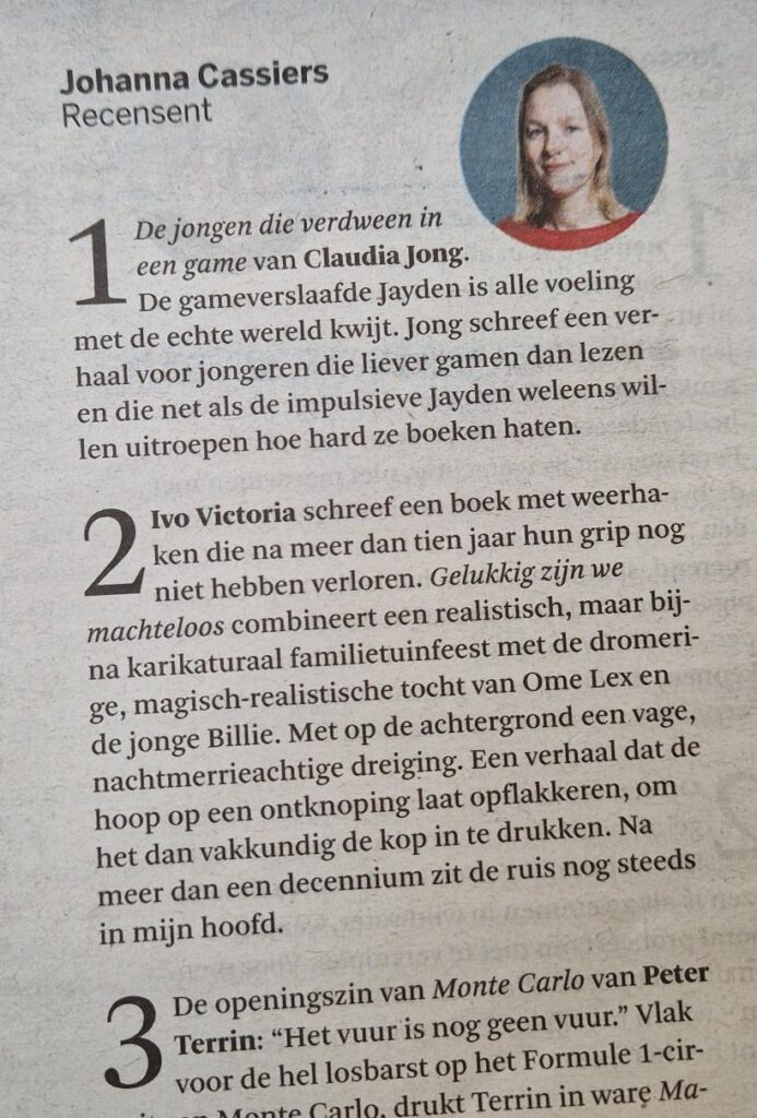 De jongen die verdween in een game stond in eindejaarslijstjes in twee grote Belgische kranten: Nieuwsblad en De Standaard.